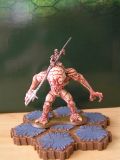 | Trample Stomp | At any point while moving, Tor-Kul-Na may choose a small or medium figure that is adjacent, on the same level, and on a space where Tor-Kul-Na may end his movement. Roll the 20-sided die. If you roll 1-7, the figure is safe and Tor-Kul-Na's movement ends. If you roll 8-20, the chosen figure receives one wound. If the wound destroys the figure, move Tor-Kul-Na on the space that the figure occupied, and you may continue Tor-Kul-Na's movement. If the chosen figure is not destroyed, Tor-Kul-Na's movement ends. Tor-Kul-Na must be on a space where he can end movement each time he uses this power.