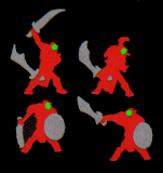 Ferocious in battle, the Blade Grut warriors are the backbone of the Orc army. As a wild, unintelligent species, they are difficult to control; but they are highly effective when trained to follow their assigned leaders, and they take their orders without question or hesitation. On the battlefield, their leaders always attack first. And the Blade Gruts fiercely follow their example. If separated from their leaders, Blade Gruts become confused, and they often lose a good deal of their savagery.