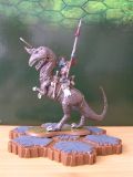 Exiled from the primitive, savage world of Grut, Grimnak is an orc warrior of the most menacing kind. He thunders onto the battlefield atop his ferocious T-Rex, raising his spear triumphantly and daring his foes to outrun him or to take cover. Enemies who cannot do so may very likely meet either of two gruesome fates. Those who manage to evade the vicious jabbing of Grimnak's spear may face the T-Rex's deadly chomp. Many a warrior has been swallowed whole-or munched a morsel at a time-by this barbarous beast, while their comrades could only look on in terror and revulsion. Grimnak's fellow orc warriors are wise to travel with him when they can: during battle they are well protected by Grimnak and the T-Rex, and with the added security and confidence comes increased attack power.
