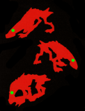 The Marrden Nagrubs are not of the race of Marro, but so often appear with them on the field of battle that they are always associated with them in the minds of their enemies. Appearing to be some type of deadly massive hound, they are fierce monsters showing even fiercer loyalty to their Marro Hivelord master. Jungle thatches, swampy marshes, and mountain cliff faces seem to be no barrier to a running Marrden Nagrub as it moves swiftly over the most difficult levels of terrain. Ferocious fighting creatures, they show no sign of leaving a battle once the combat begins. In the thick of the deadliest fighting, the giant Marro often takes up one of the Nagrubs and eats it and the huge tears on the Hivelord's body heal before its enemy's horror-filled stares.